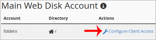 3. Under "Main Web Disk Account", click on Configure Client Access.