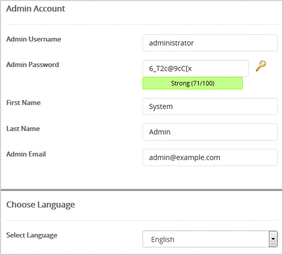 8. Under the "Admin Account" field enter the following information: