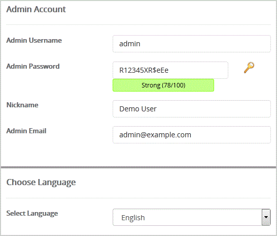 - Nickname: Nickname for the admin user account.
